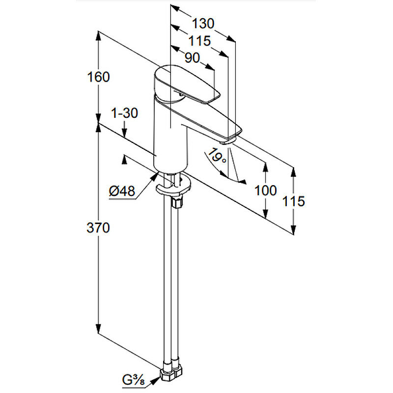 Смеситель для умывальника KLUDI PURE&SOLID однорычажный 100, без донн.клапана 342920575
