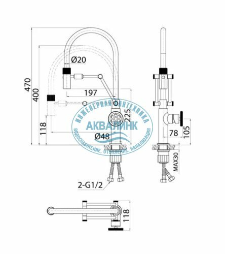 | Присоединительный размер | 1/2" x 1/2" |