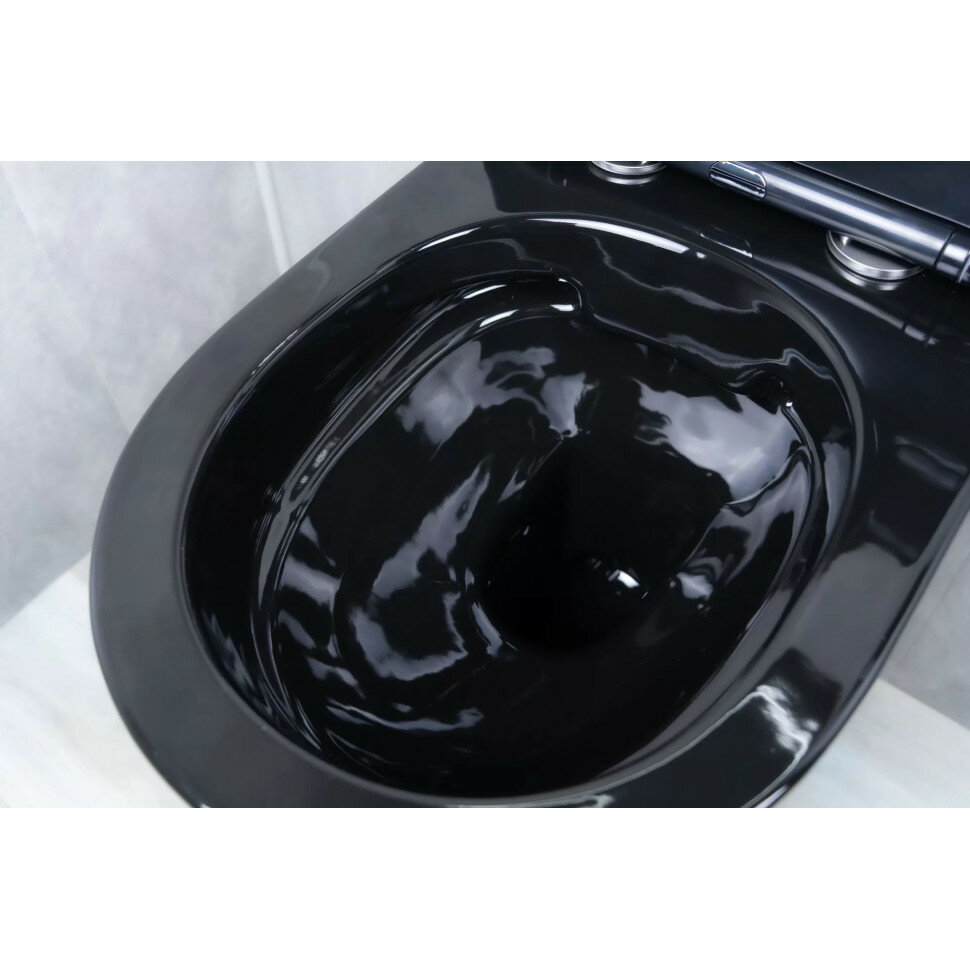Безободковый подвесной унитаз черный глянцевый микролифт дюропласт Gid Tr2198-18