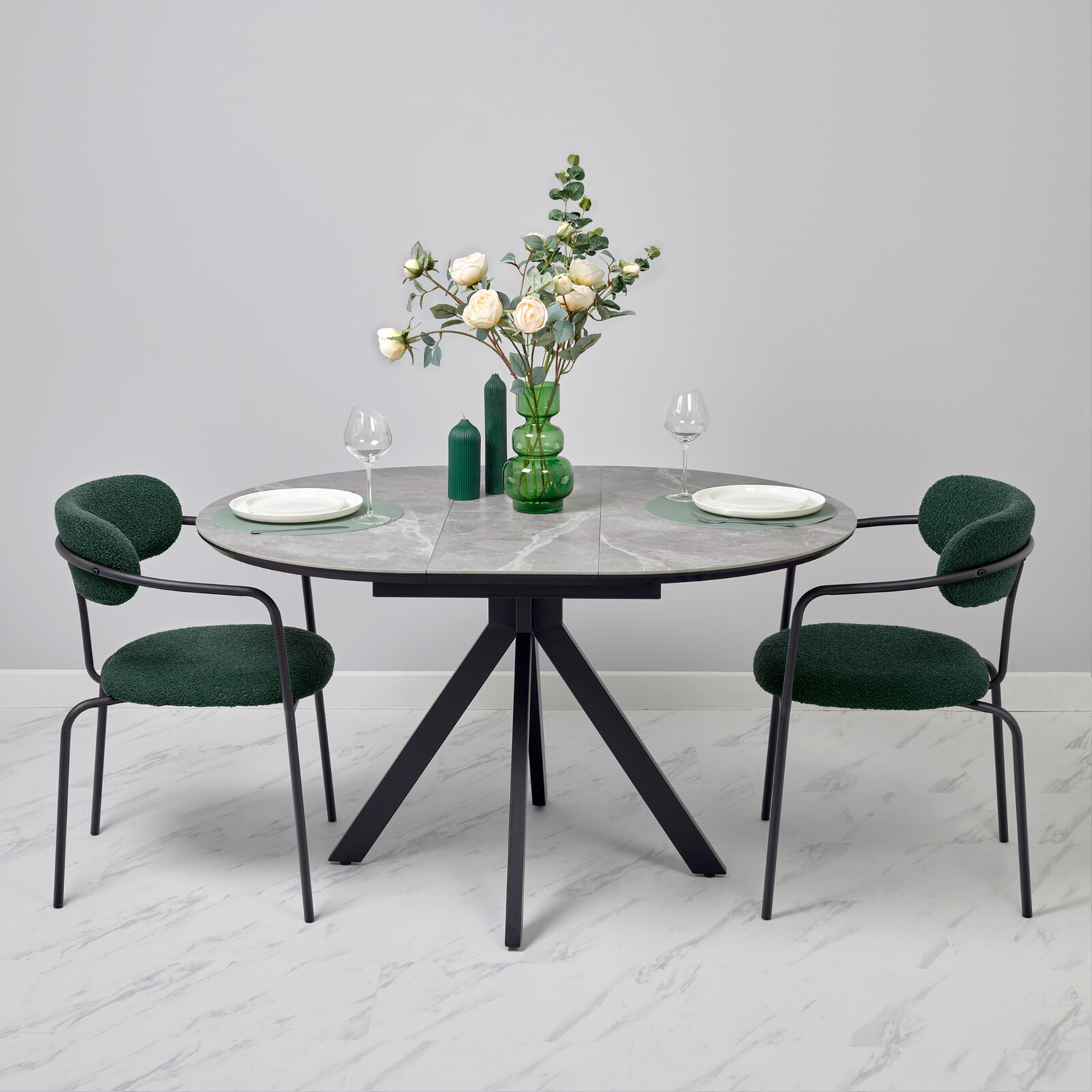 Стулья для кухни 2 шт комплект Ant букле зеленый обеденные мягкие со спинкой и с подлокотниками, офисные лофт