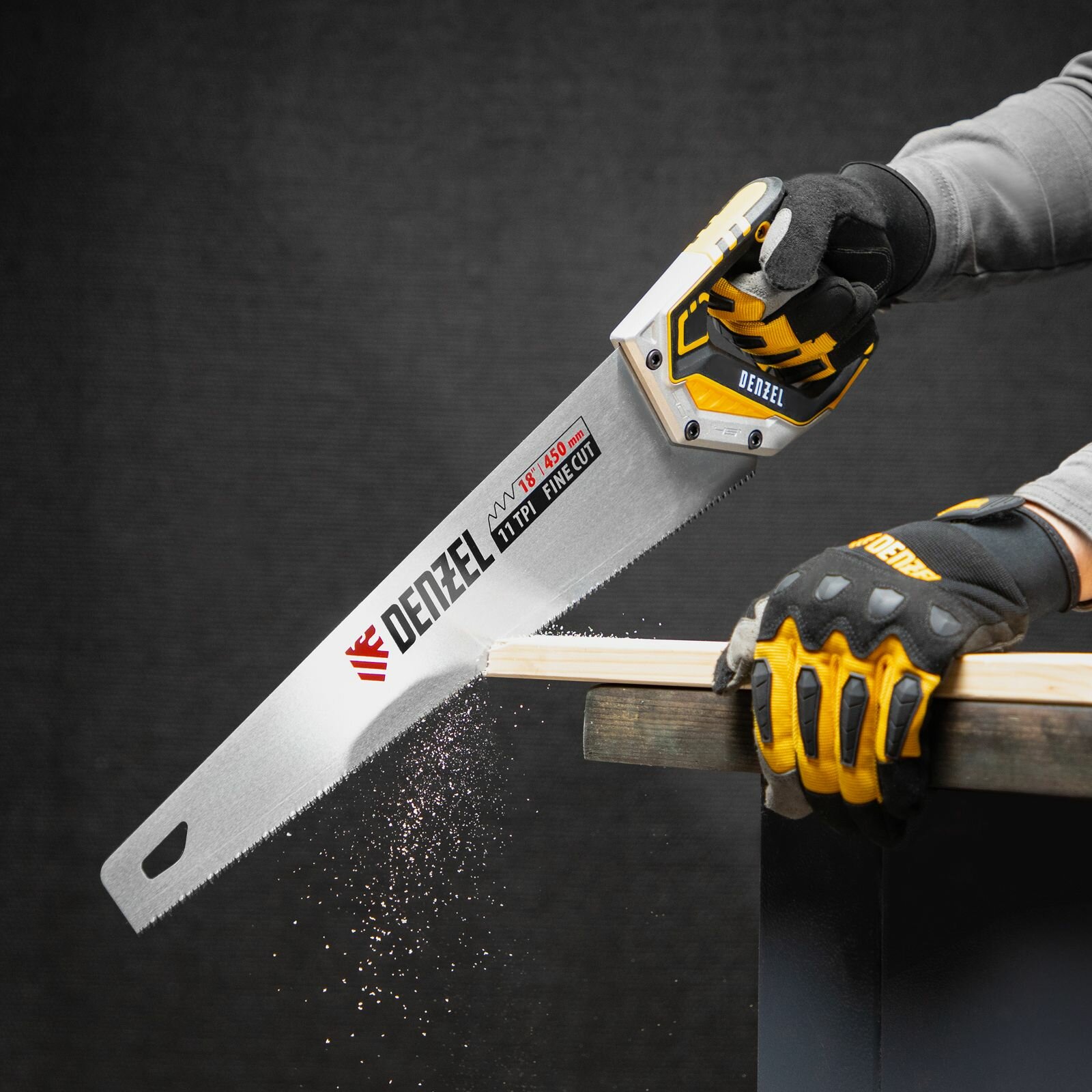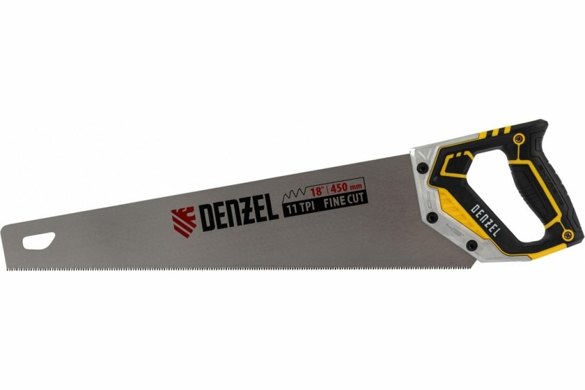 DENZEL Ножовка по дереву, 450 мм, 11 TPI, зуб 3D, металлопластиковая рукоятка Denzel