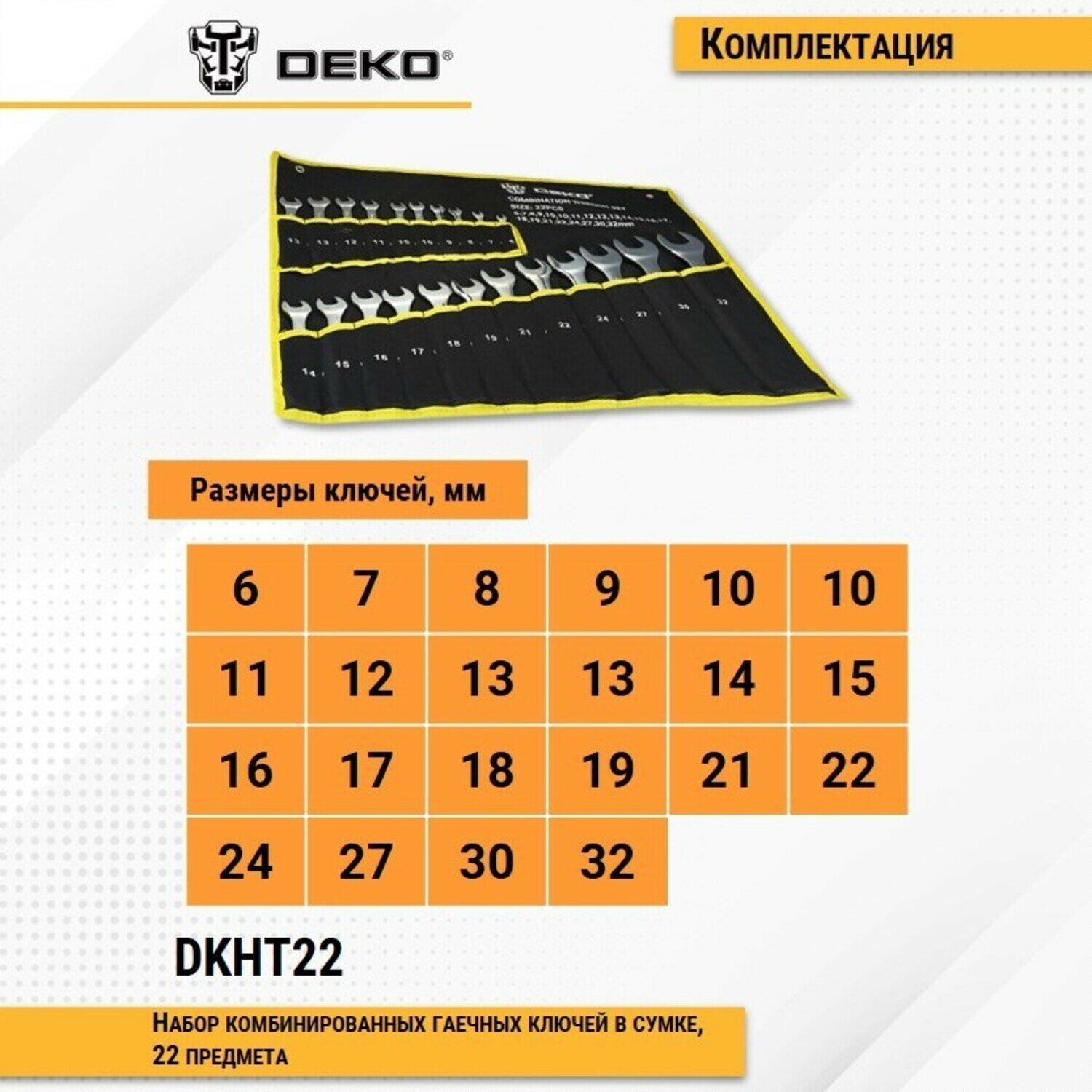 Набор комбинированных гаечных ключей DEKO DKHT22 в сумке (22 предмета)