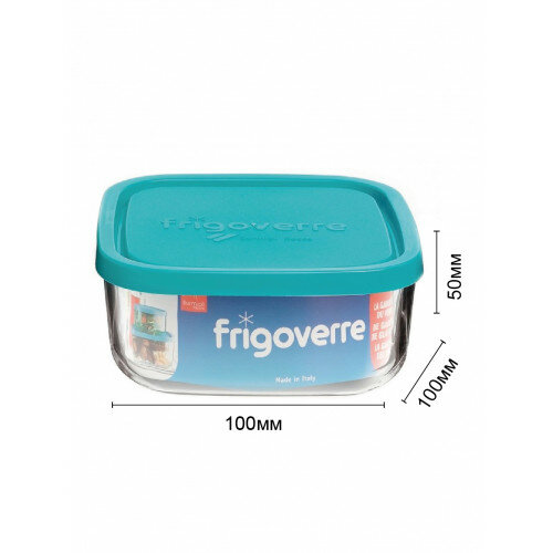 Купить Контейнер стеклянный 10х10 см FRIGOVERRE Bormioli Rocco квадратный с голубой крышкой для хранения продуктов 340мл
