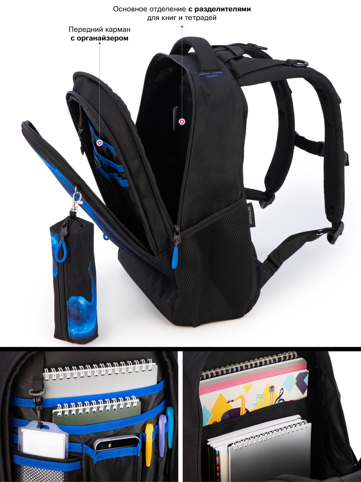 Рюкзак школьный для мальчика подростка 17,2 л, А4, мужской городской с анатомической спинкой SkyName (СкайНейм) + пенал
