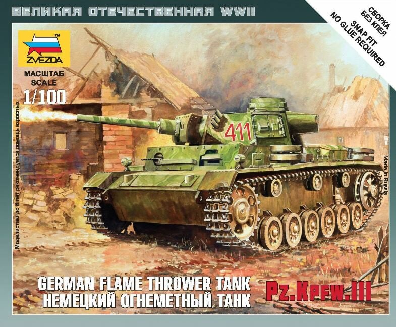Сборная модель Zvezda Немецкий огнеметный танк Pz.Kfw III, масштаб 1:100 - ZV-6162