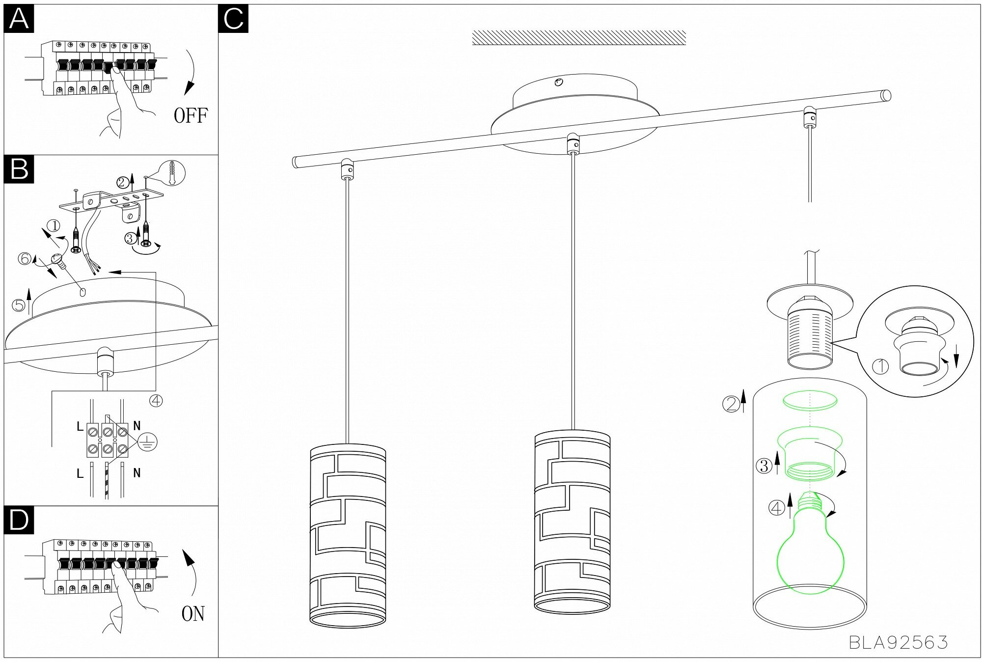 Светильник подвесной Eglo 92563, Белый, E27 180