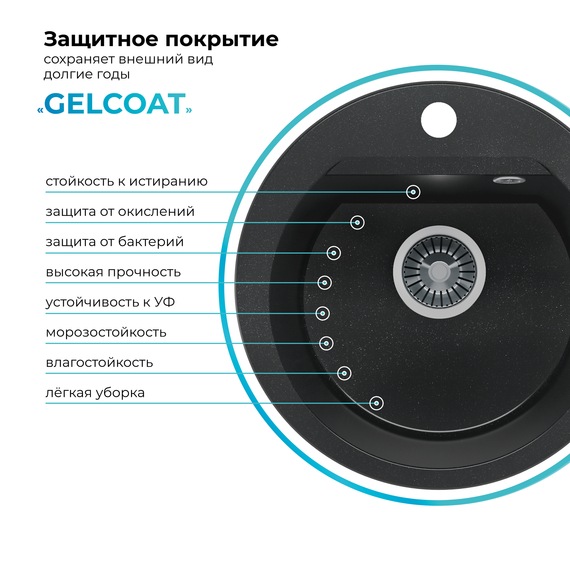 Мойка для кухни POLYGRAN ATOL-460 каменная, врезная, раковина кухонная, круглая с отверстием под смеситель (№16 Черный)