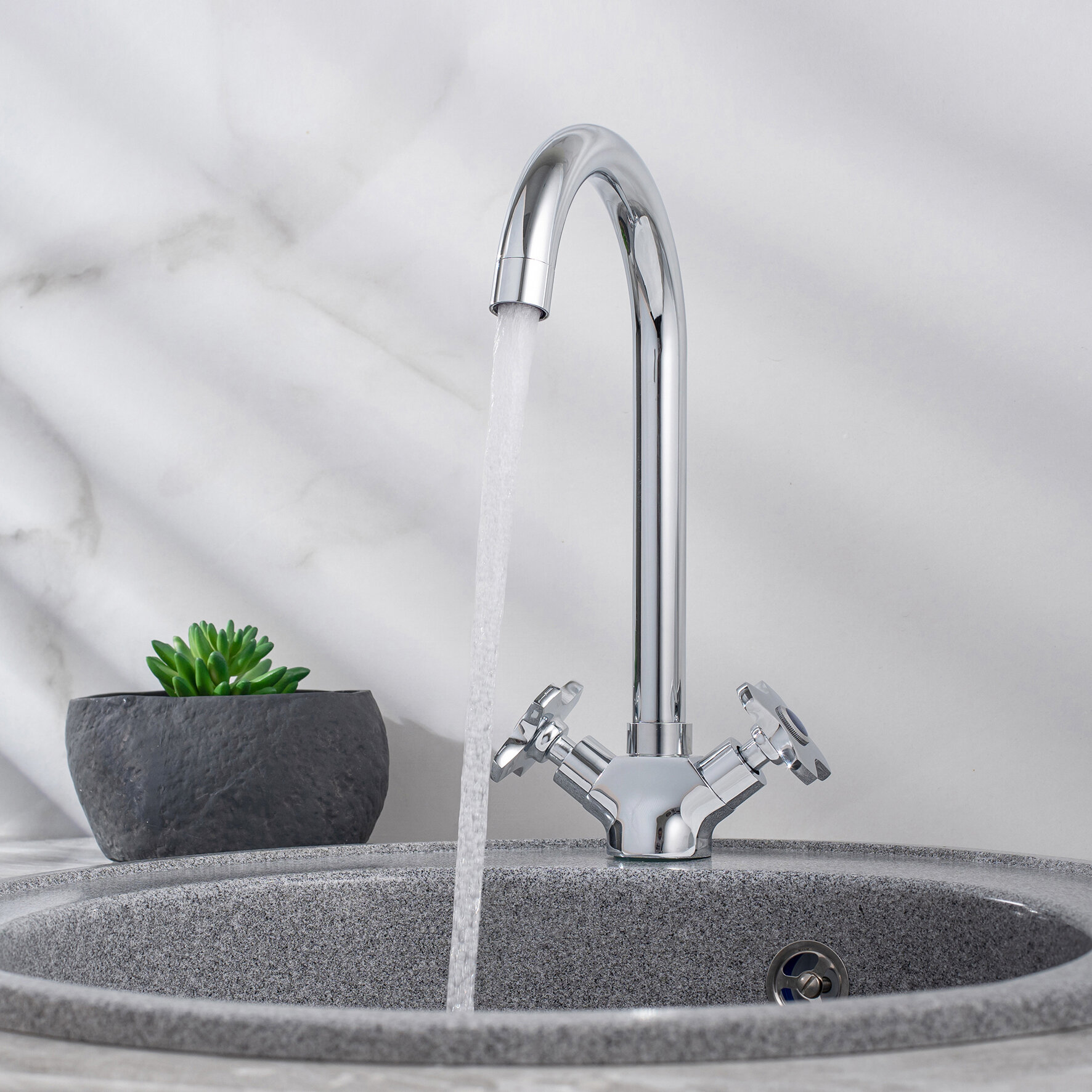 Смеситель для кухни, РМС SL115-274F, поворотный излив, двухвентильный, с гибкой подводкой интересное:
