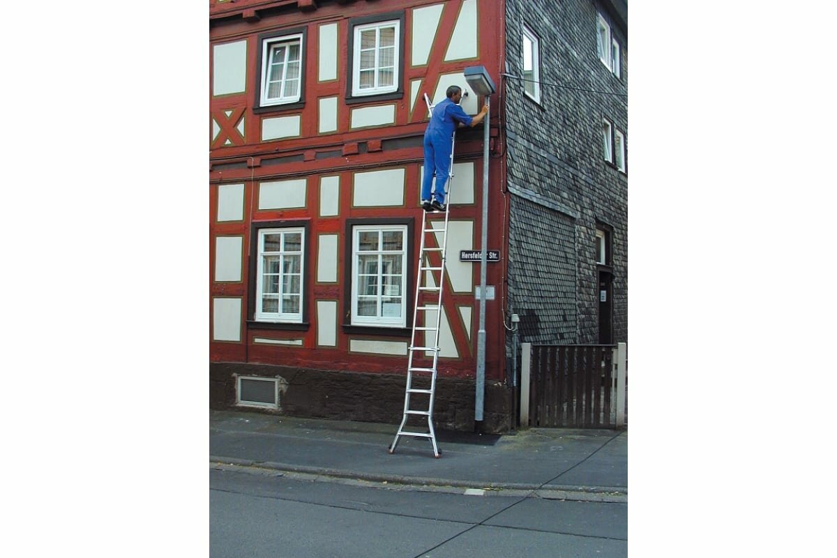 Шарнирная телескопическая лестница KRAUSE STABILO с удлинителями боковин, 20 (4х5) ступеней, высота 4-6 м, партномер 133984