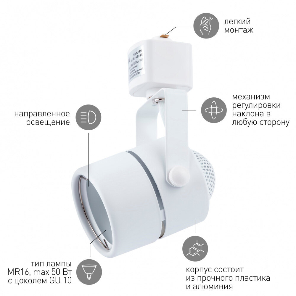 Трековый светильник ЭРА Trek TR11-GU10 WH Б0044269 интересное: