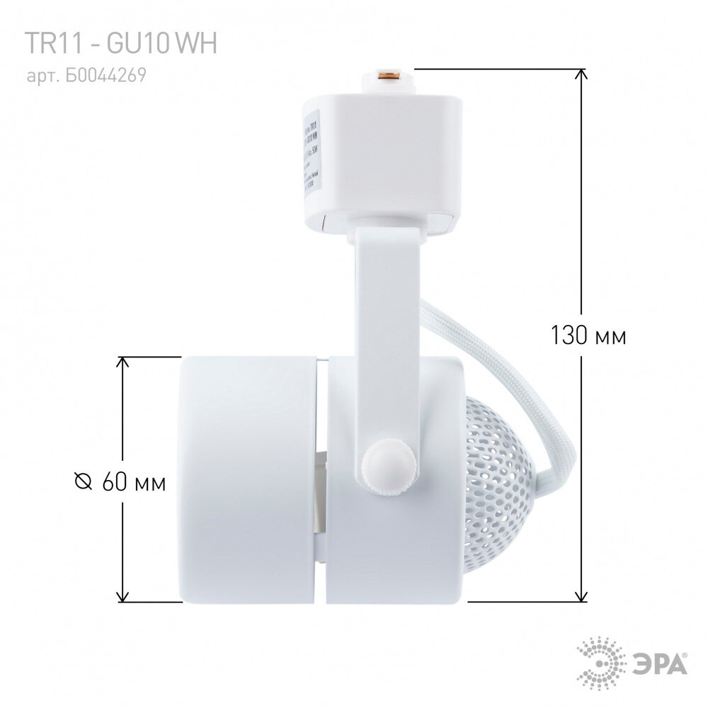 ЭРА св-к трековый на шинопровод под лампу GU10 TR11 WH 1-фаз. кругл. 60х60х130 белый алюм. 1157