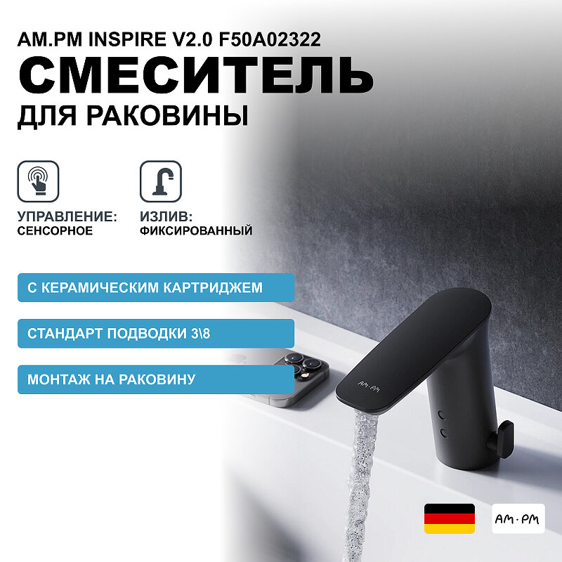 Ниже Вы можете прочитать отзывы на Am.Pm F50A02322 Inspire V2.0 смеситель для умывальника сенсорный, черный, шт., ознакомится с подробными характеристиками, посмотреть интересные обзоры и фотографии на Am.Pm F50A02322 Inspire V2.0 смеситель для умывальника сенсорный, черный, шт..