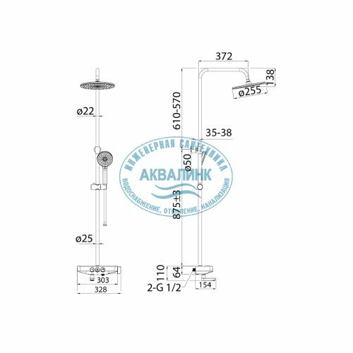 | Комплектация | верхний душ / лейка / полочка / шланг |