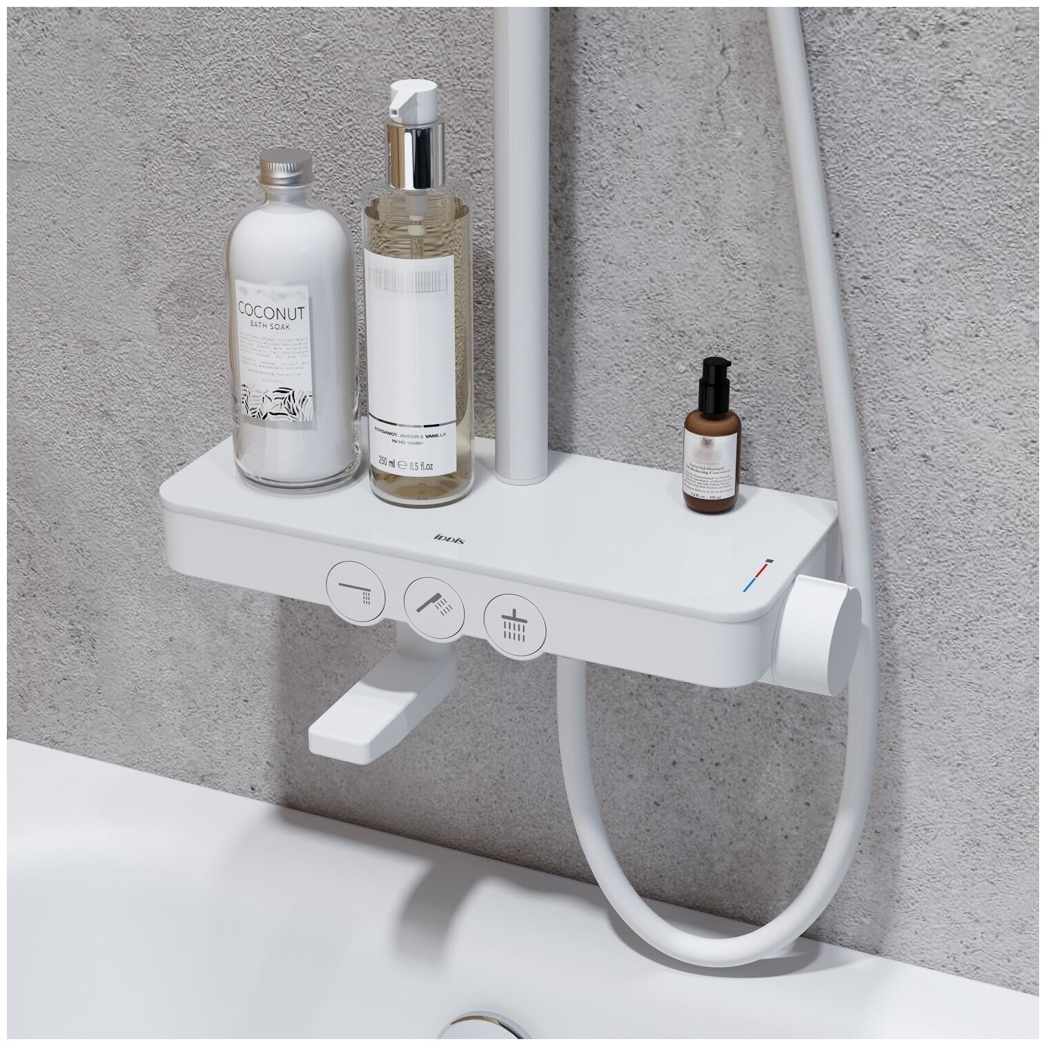 Смеситель для ванны с верхним душем Iddis Shelfy SHEWTBTi06, белый матовый