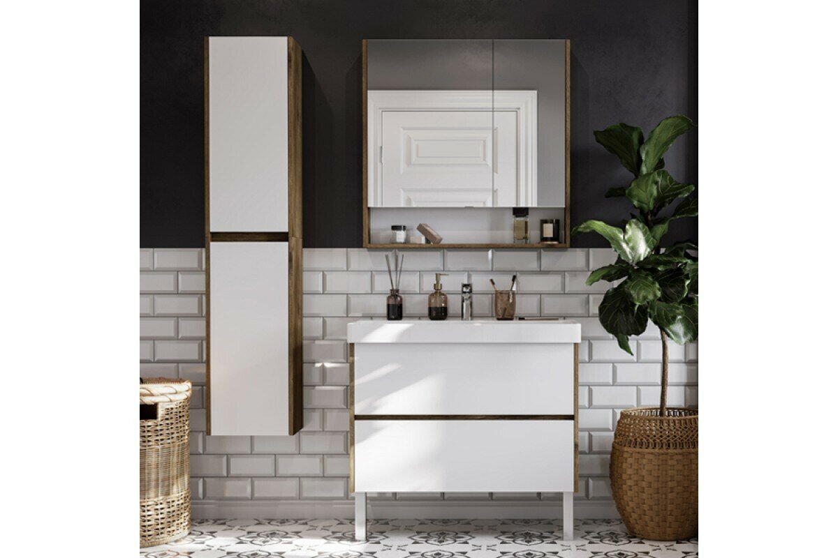 Комплект - тумба Сканди 90 Белый/Дуб рустикальный и раковина Адриана 90