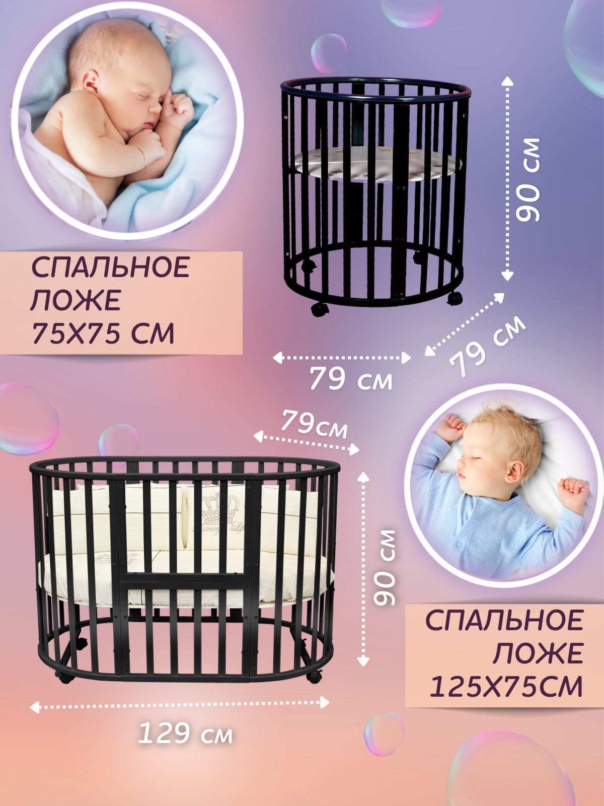 Детская кроватка для новорожденного трансформер 9в1 Северная Звезда, круглая люлька 75*75, овальная кровать 125*75, Азбука Кроваток, венге