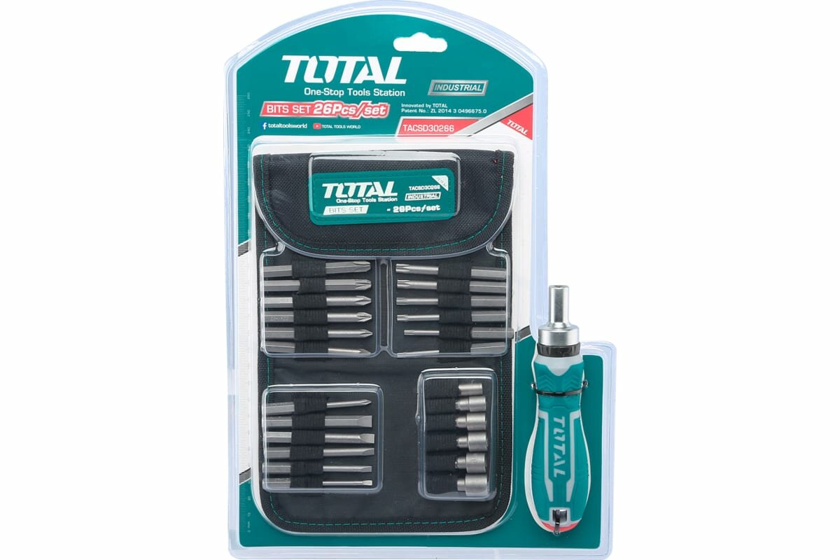 Отвертка с набором бит TOTAL TACSD30266, 26 предм.
