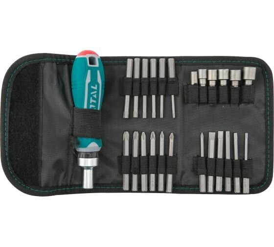 Отвертка реверсивная с набором бит 26 шт. в чехле, TOTAL