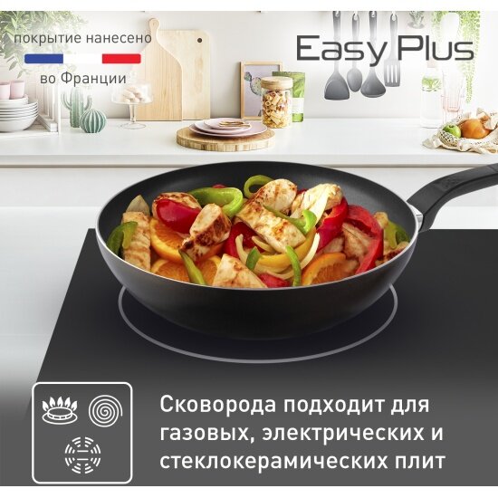 Сковорода-вок Tefal Easy Plus, с антипригарным покрытием, 28 см