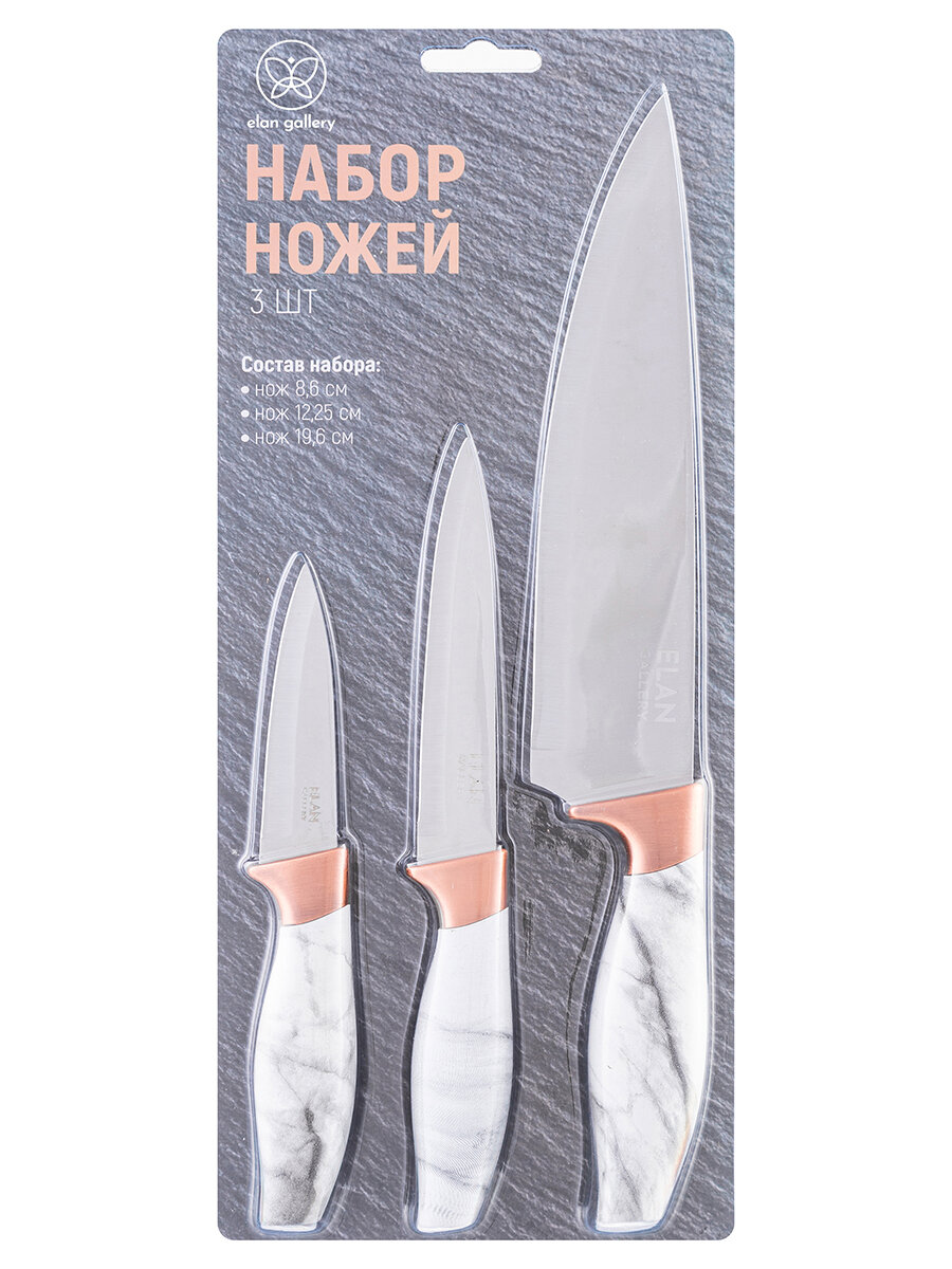 Набор 3-х ножей Elan Gallery Мрамор с бронзой 19,5х2х2,8 см, 23х2х2,8 см, 33х2,5х4,6 см (240199) интересное: