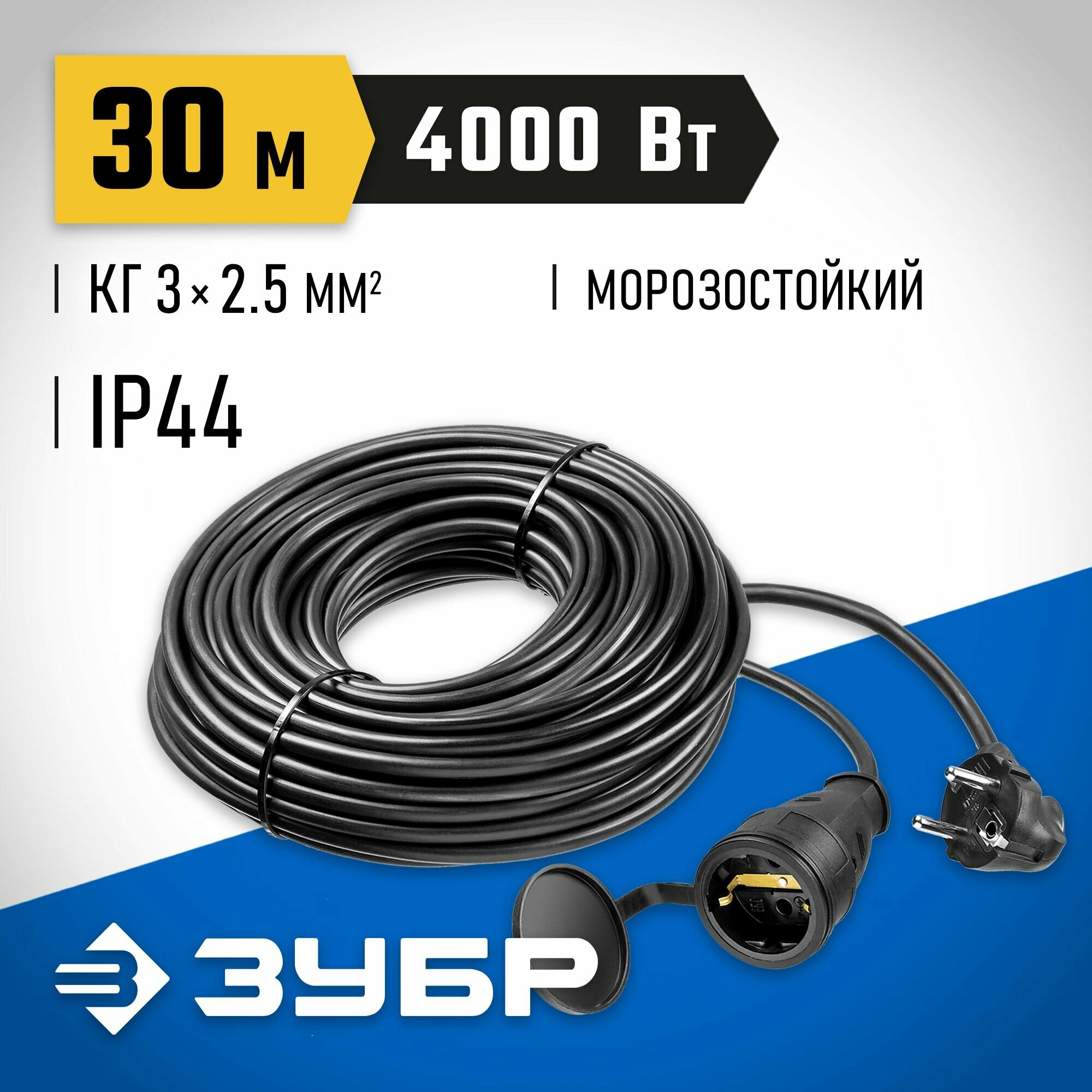 Силовой удлинитель-шнур ЗУБР КГ 3х2.5 30м 4000Вт IP44, КГ 325-Ш, Профессионал