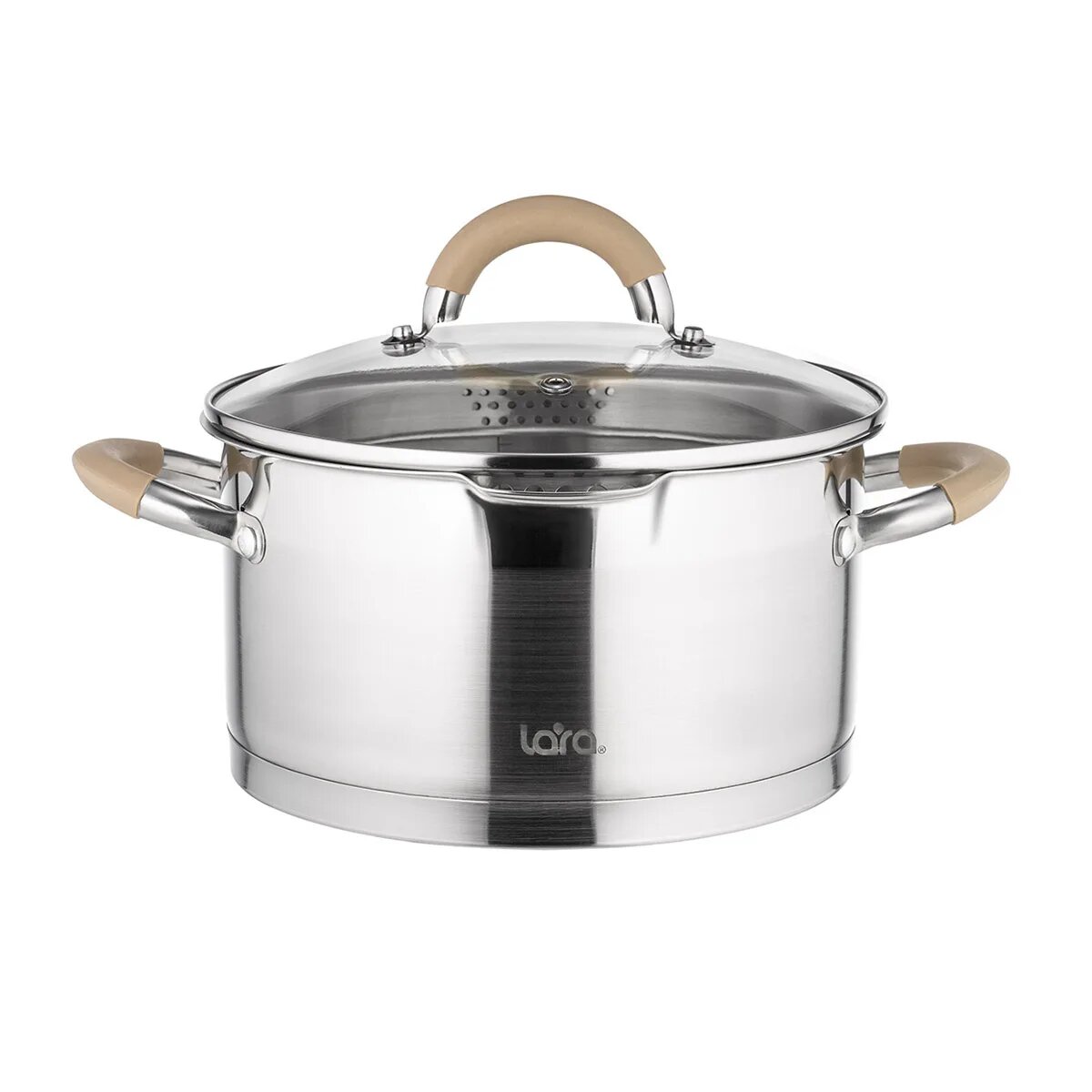 Кастрюля 4,4л LARA Берлин со ст.кр., нерж., капс.индукц. дно, крышка со сливом LR02-343