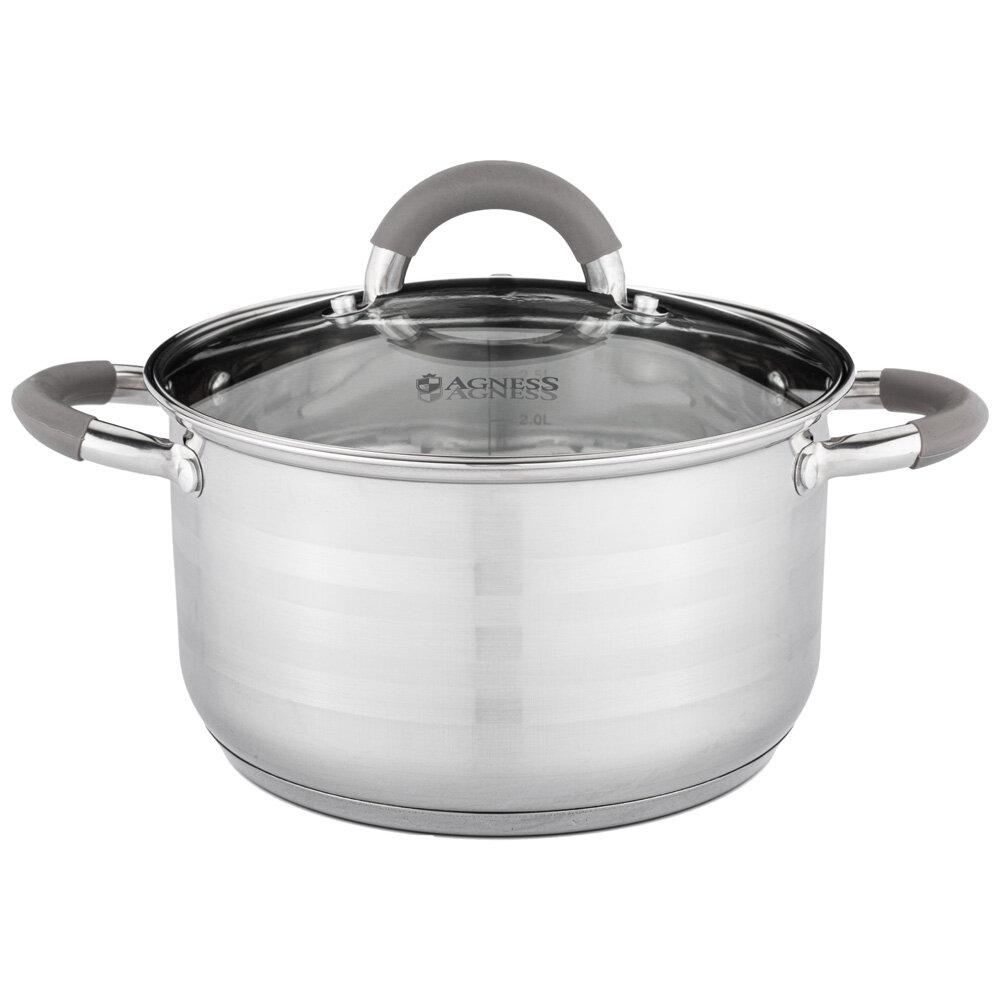 Набор кастрюль 1,6 л;2,3 л;3,1 л нержавеющая сталь со стеклянной крышкой, для индукционных плит Agness Classic, нержавейка с толстым дном 2,3 литра для газовой плиты