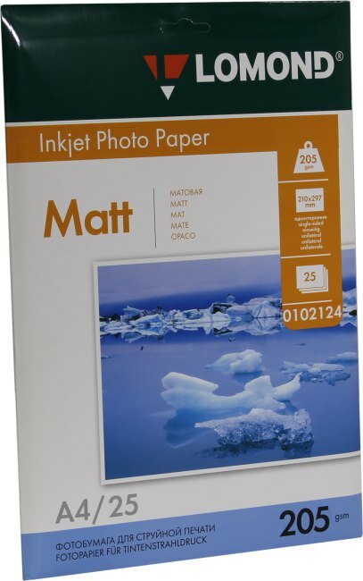 Бумага A4 Lomond матовая односторонняя 205 гр/м2, 25л. (0102124)