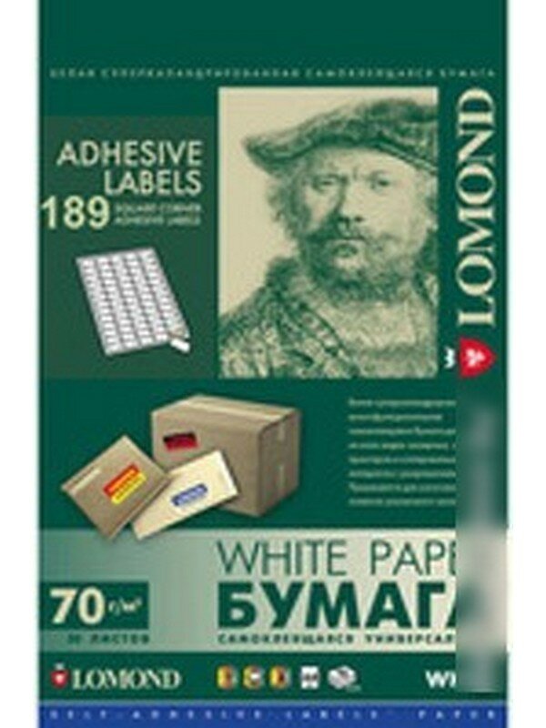 Самоклеящаяся бумага Lomond A4, белая, 189 делений (25.4 x 10 мм), 70 г/м2, для этикеток, 50 листов (2100235)