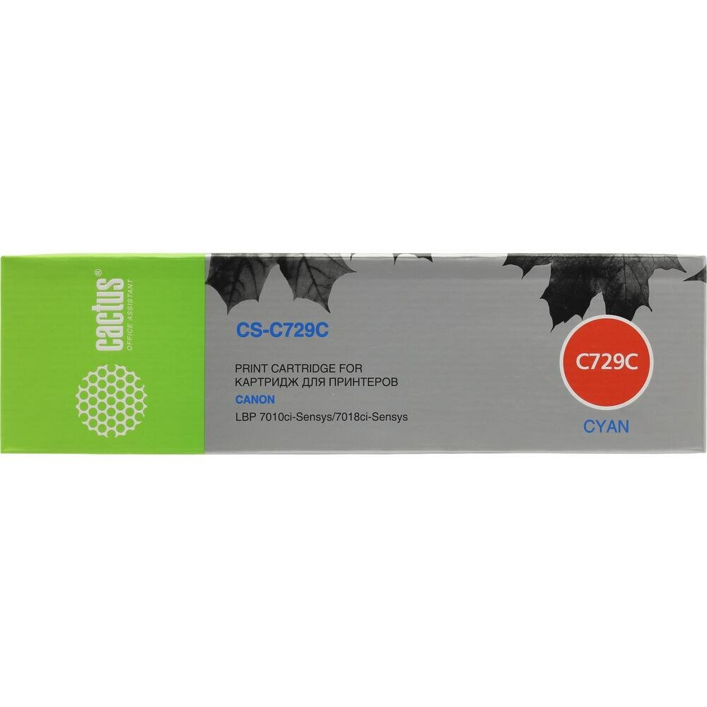 Картридж Cactus CS-C729C для принтеров Canon i-SENSYS LBP7010C/ LBP7018C, голубой, 1000стр.