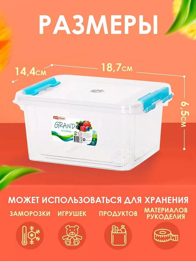 Контейнер elfplast "Grand" для хранения пластиковый с крышкой 0,8 л, (прозрачный) 545
