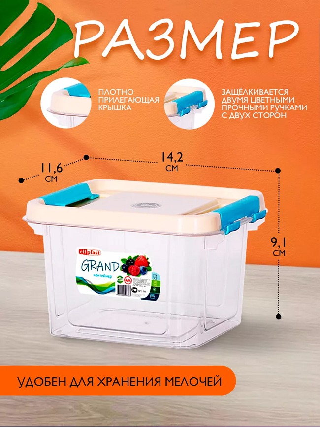 Контейнер elfplast "Grand" для хранения пластиковый с крышкой 0,8 л, (прозрачный) 545