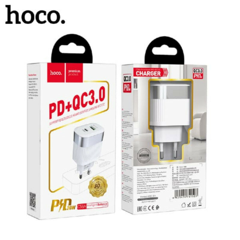 Сетевое ЗУ HOCO C58A, PD20W+QC3.0, 1хUSB-С, 1хUSB-A, 3А, белый (12/120)
