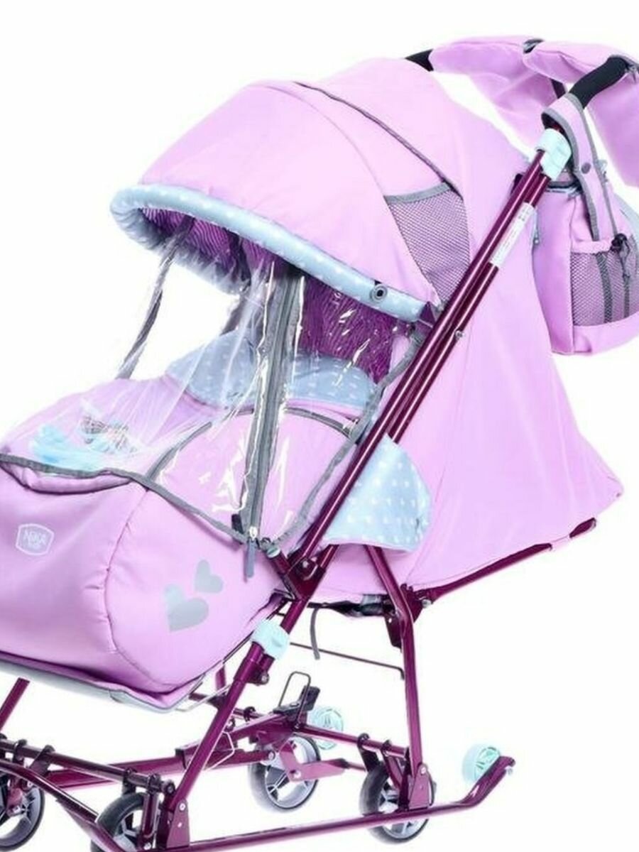 Санки-коляска НД7-6/16 со щенком орхидея /Ника чехол д/ног, колесо, механизм качания