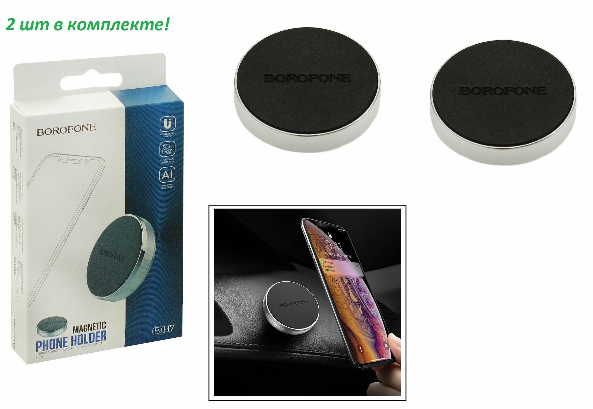 Держатель автомобильный магнитный BOROFONE BH7 MINI для смартфона и прочих мобильных устройств.