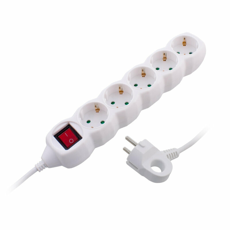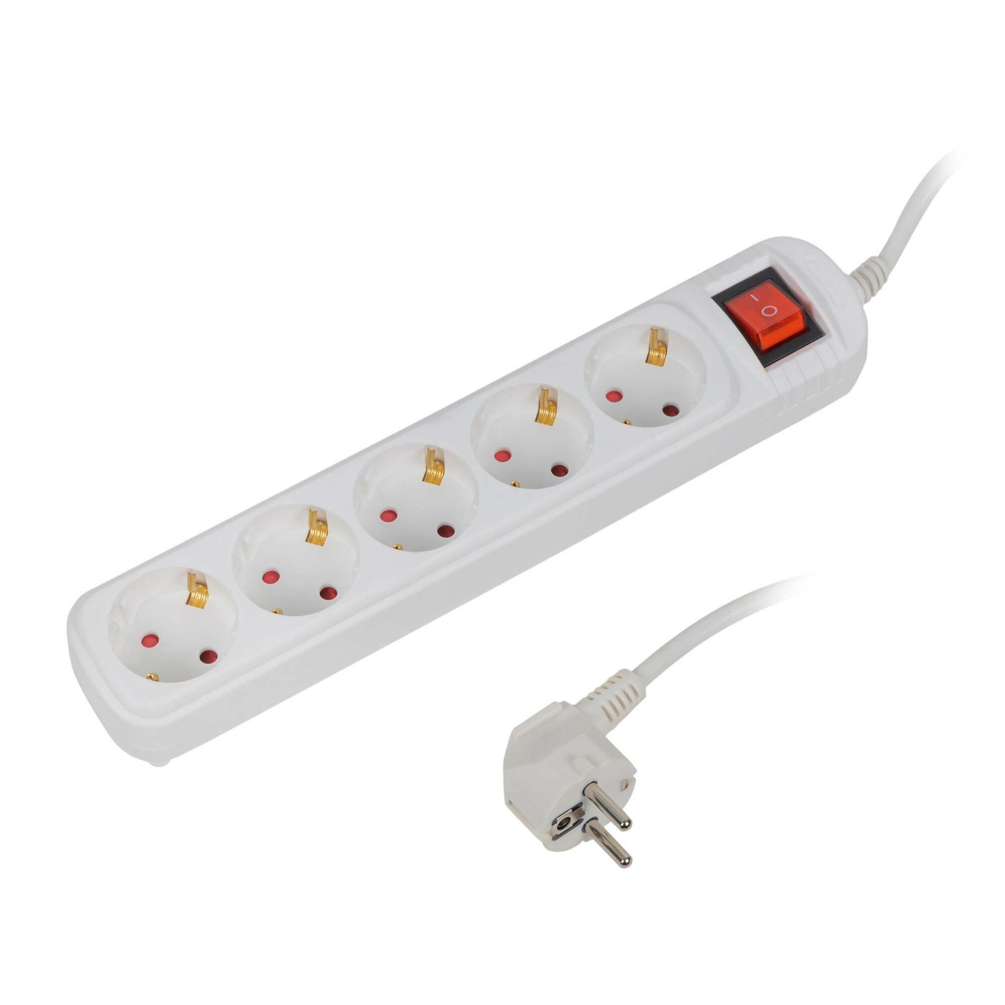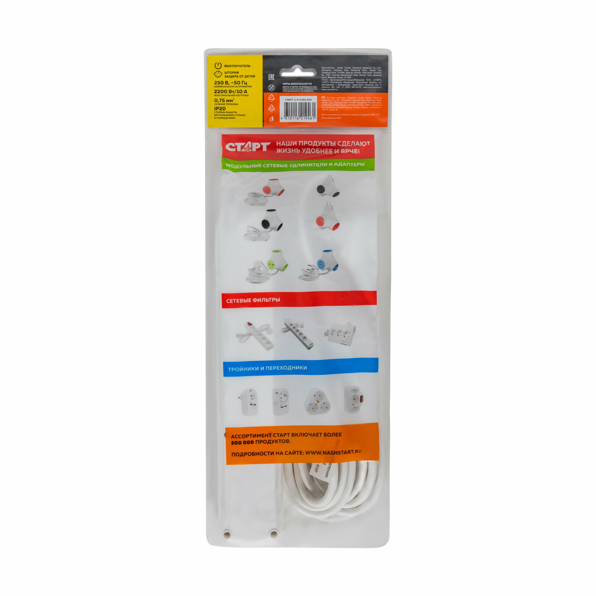 Удлинитель сетевой бытовой c заземлением и выключателем 5м старт 5 розеток, 10А, 2200Вт