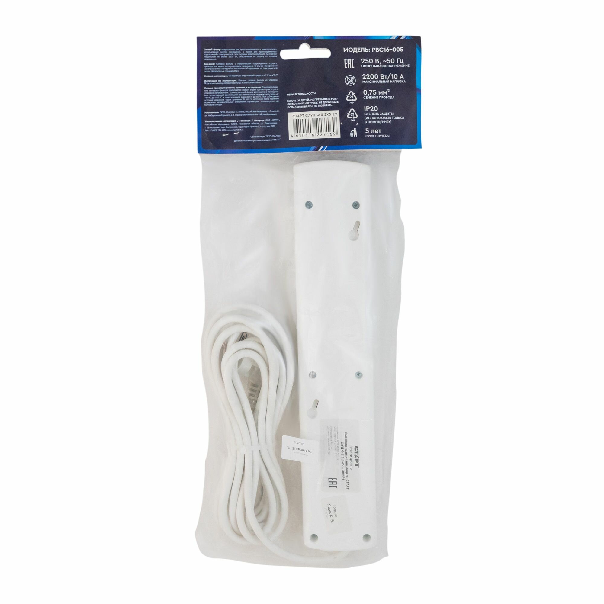 Удлинитель сетевой бытовой c заземлением 5м старт 5 розеток, 10А, 2200Вт защита от детей