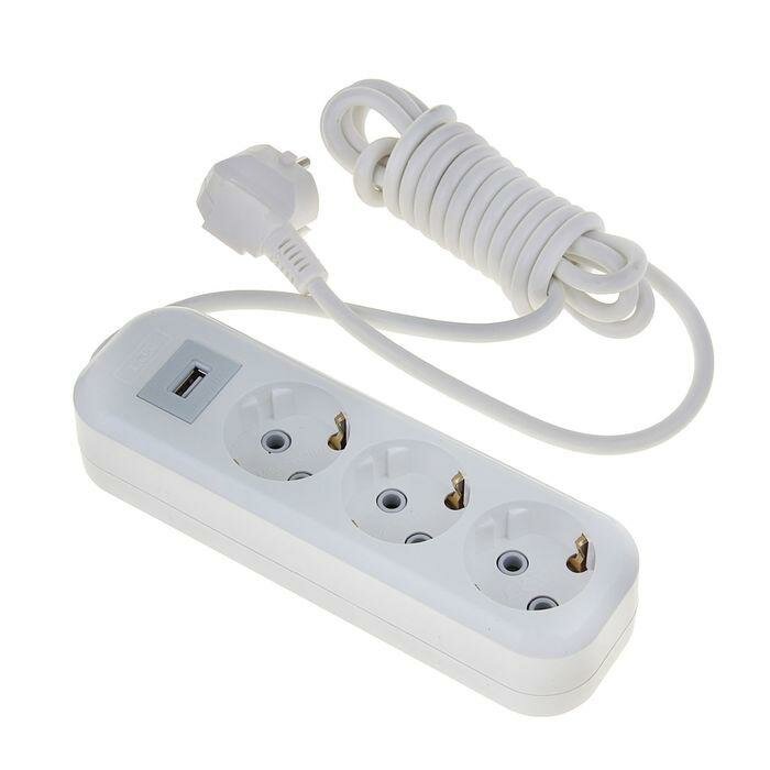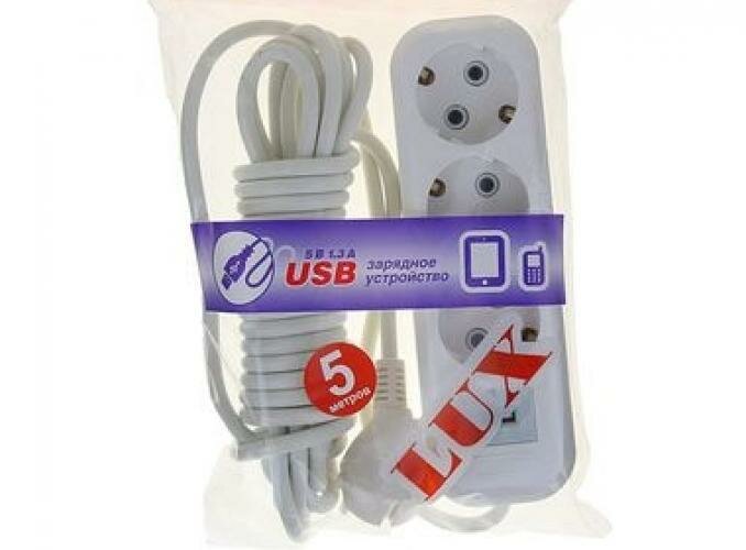 Удлинитель LUX У3-Е-USB-05, 3 розетки, с/з, 16А / 3600 Вт белый 5 м 0.75 м² 3