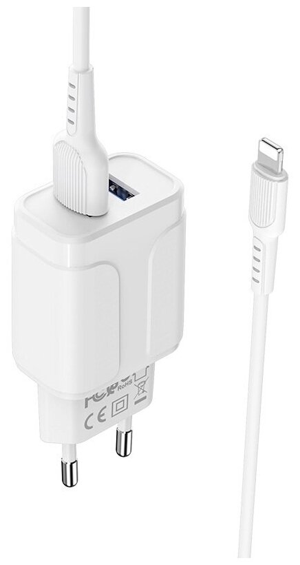 Сетевое зарядное устройство Borofone BA37A Speedy + кабель Lightning, 12 Вт, белый