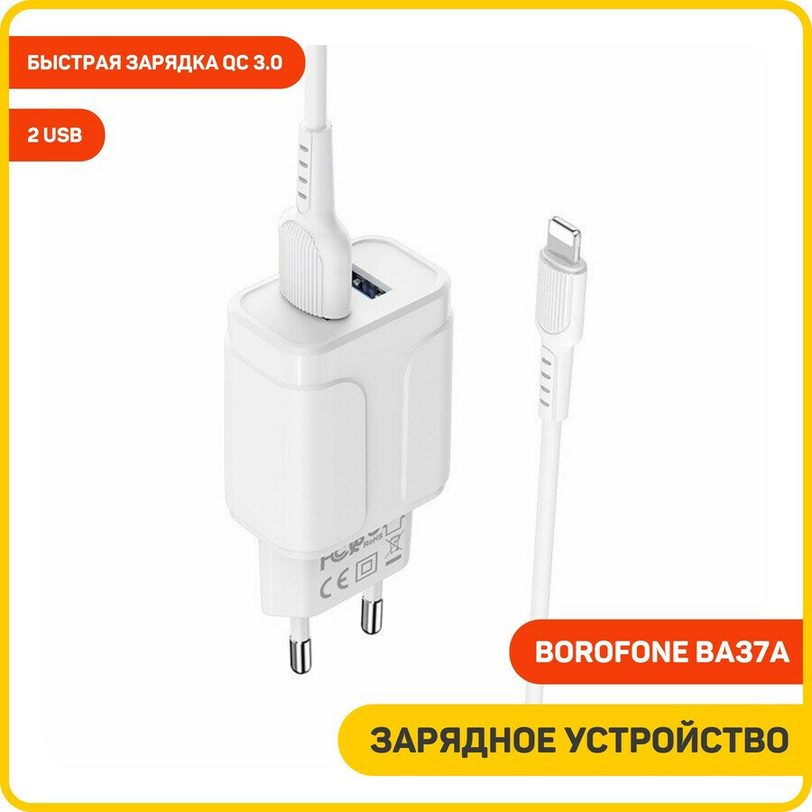 Сетевое зарядное устройство (СЗУ) Borofone BA37A (2 USB) + кабель Lightning, 2.4 А, белый