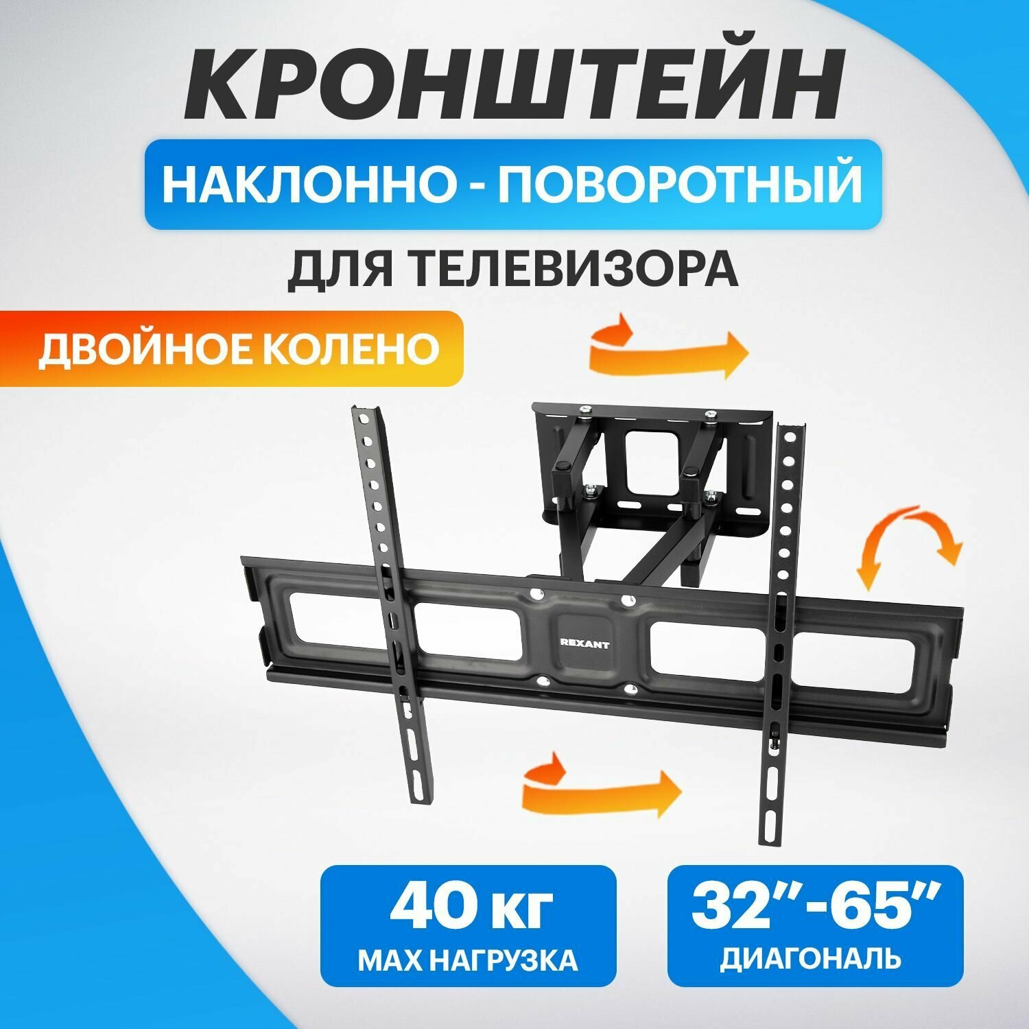 Купить Кронштейн для телевизора 32"-65" дюймов, наклонно-поворотный, двойное колено Rexant серия Home 38-00 .