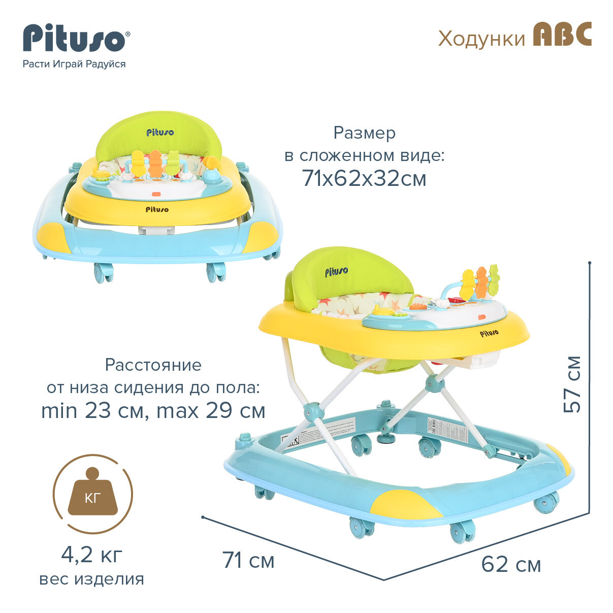 Ходунки Pituso ABC Yellow/Mint, Бананово/мятный интересное: