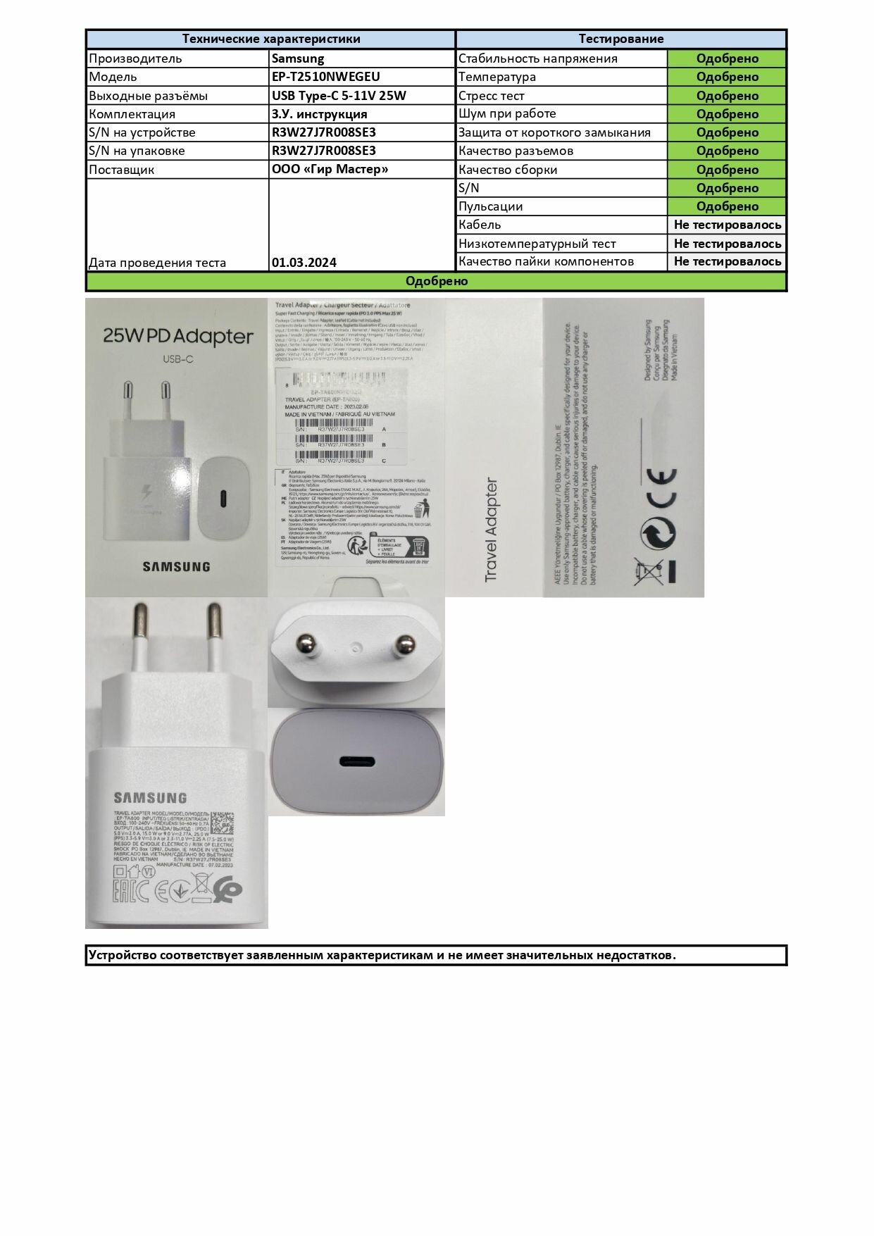 | Отзыв: | Заявленным характеристикам соответствует |