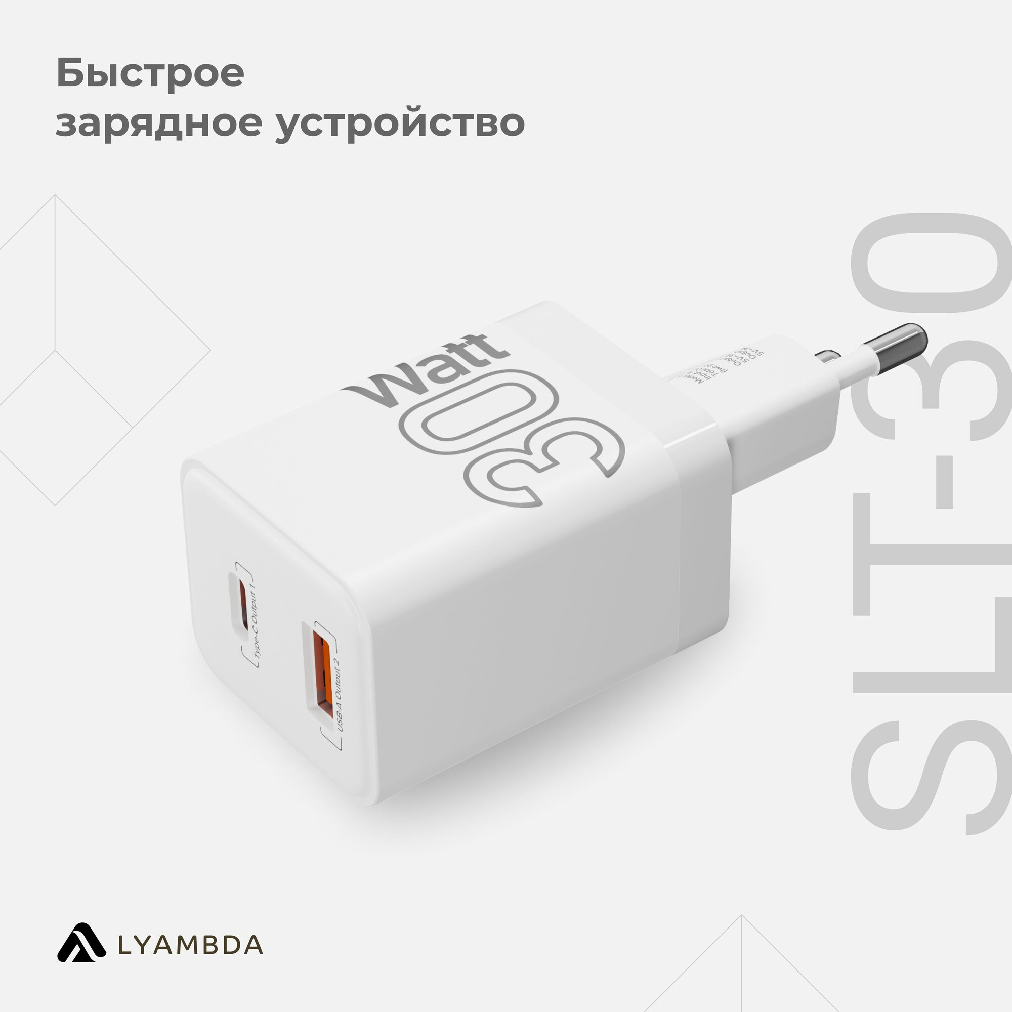 Cетевое зарядное устройство Lyambda 30Вт c 2-мя выходами (PD+QC3.0) SLT-30 / сетевой адаптер 30 Вт с функцией быстрой зарядки