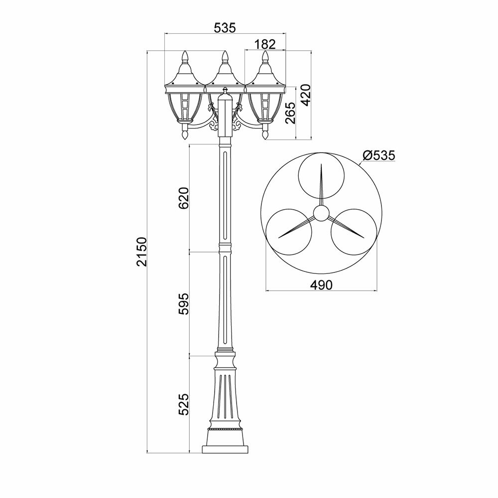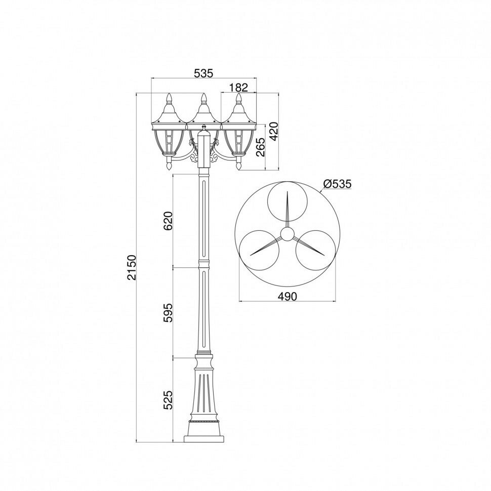 Столб фонарный уличный Maytoni Rivoli O026FL-03B