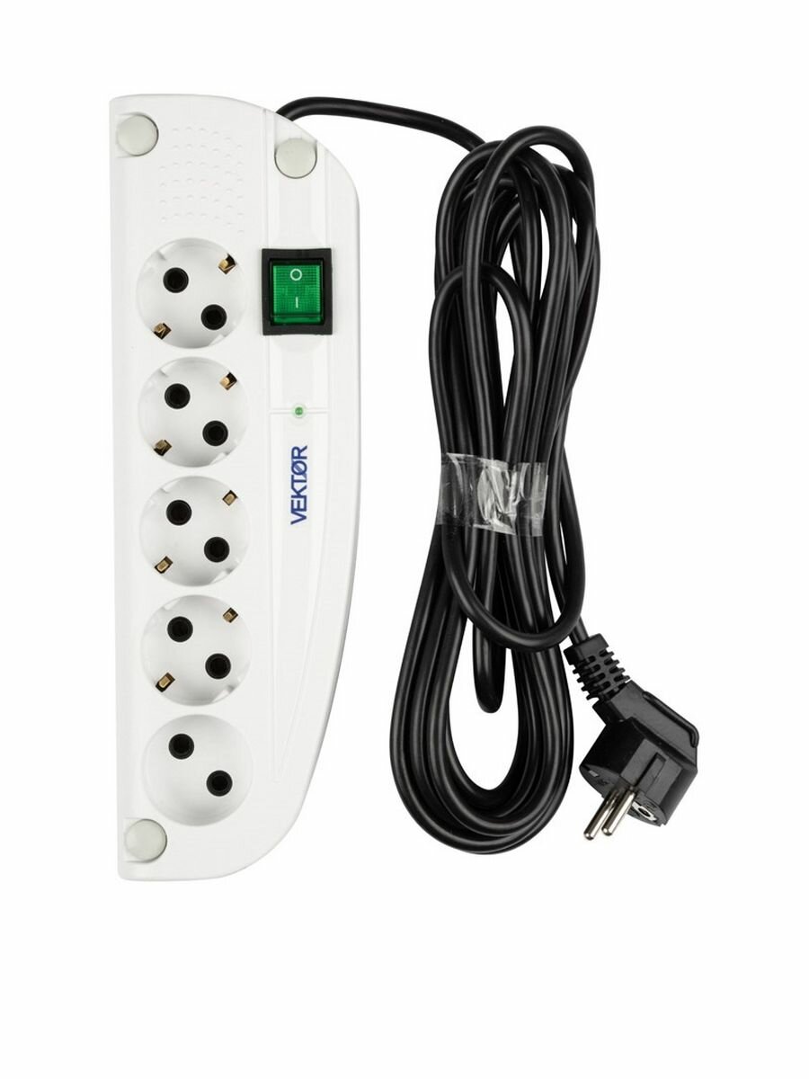 Сетевой фильтр VEKTOR Z, 5 розеток, с/з, 4А / 3500 Вт 5 м