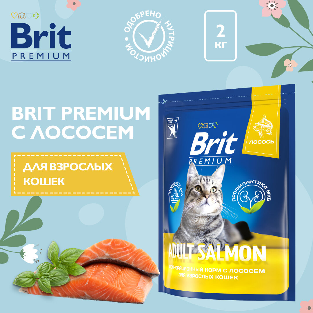 Сухой корм BRIT PREMIUM CAT ADULT SALMON для взрослых кошек с лососем (2 кг)