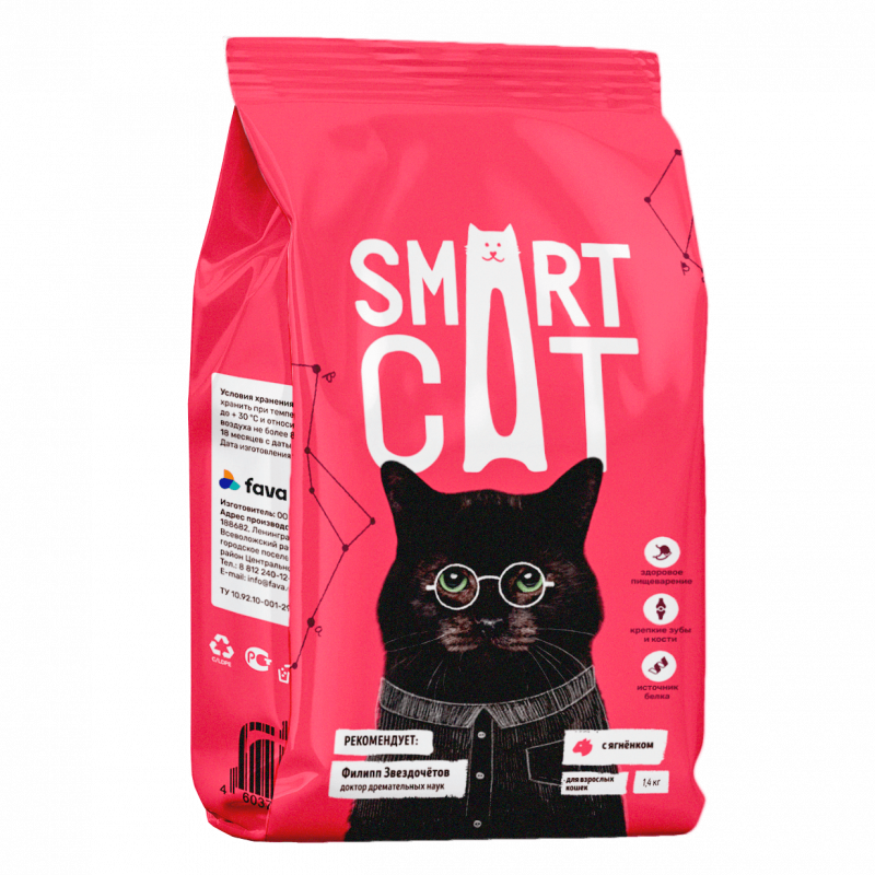 Для взрослых кошек с ягненком 1.4kg Smart Cat сухой корм