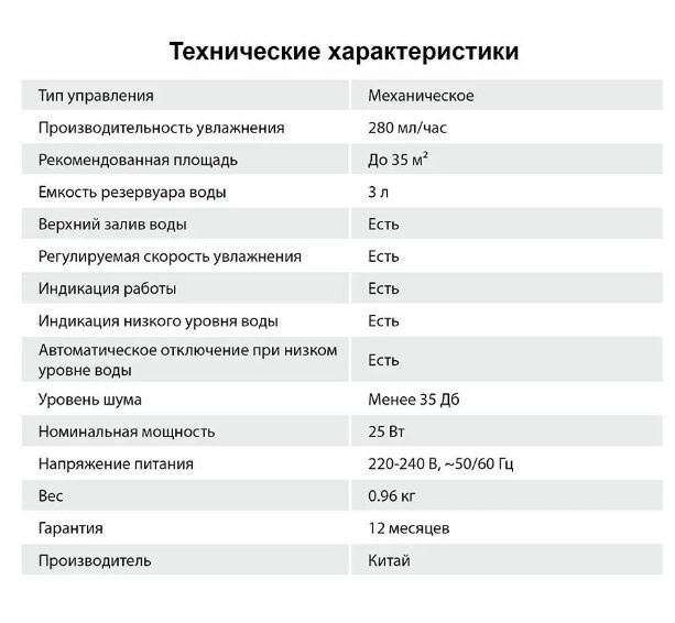 | Тип увлажнителя | ультразвуковой |