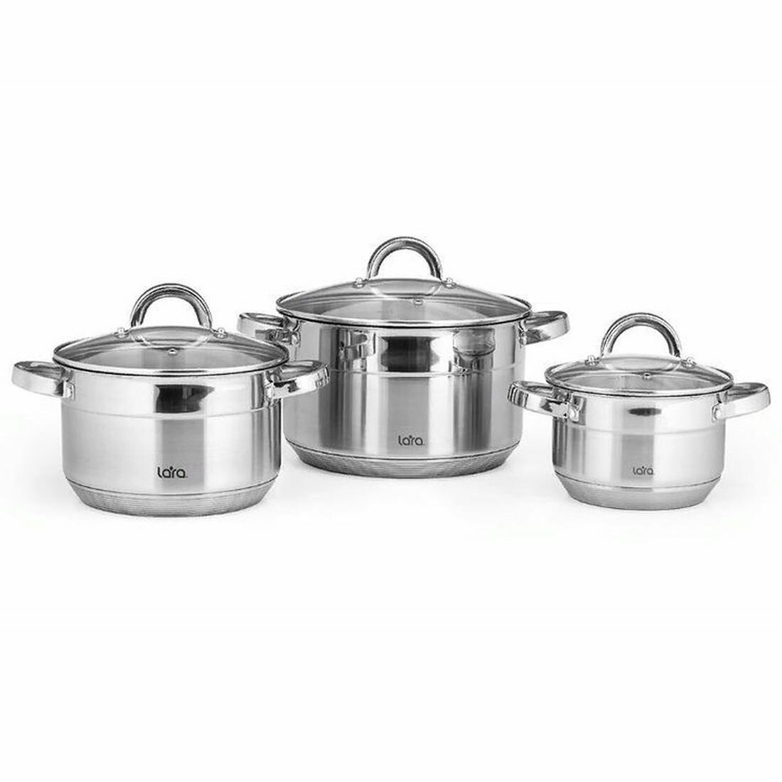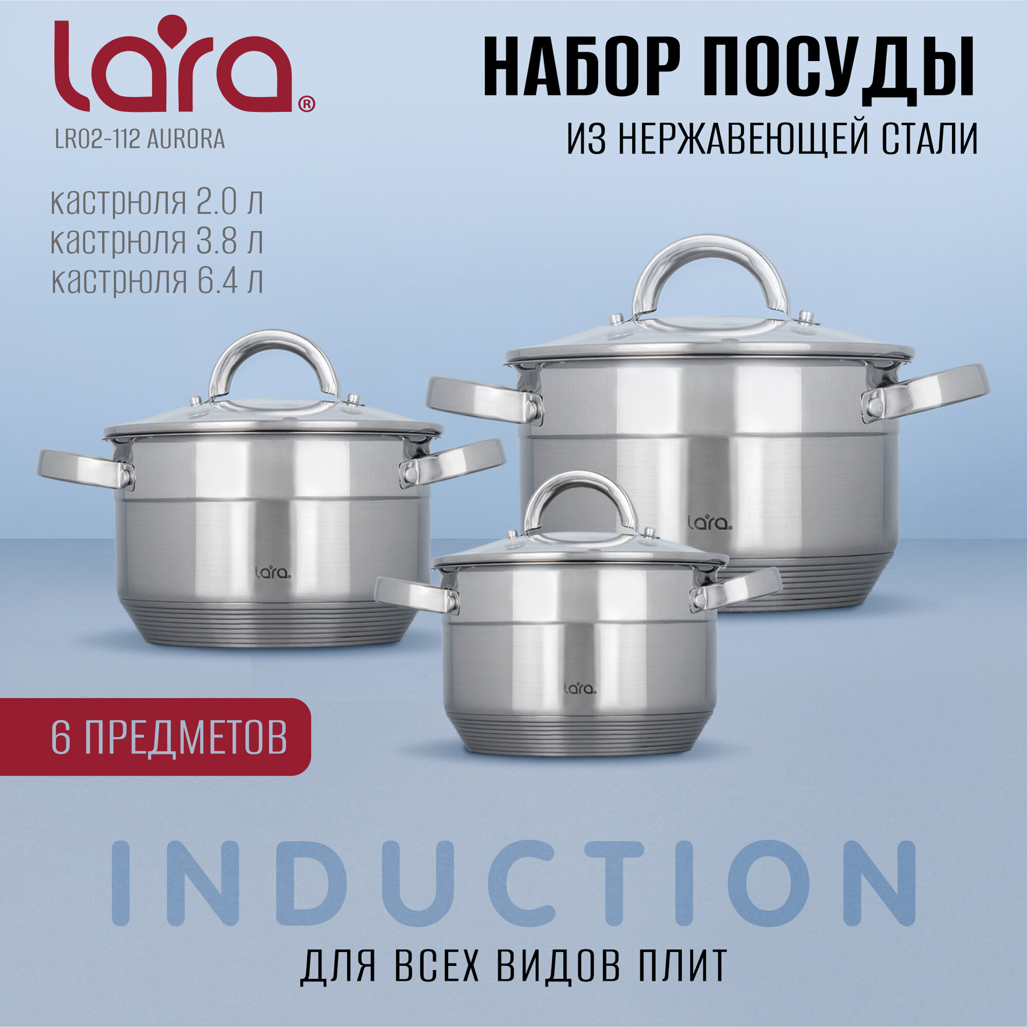 Купить Набор кастрюль из нержавеющей стали LARA LR02-112 AURORA/ 2 л + 3.8 л + 6.3 л/ для всех видов плит/ 3 предмета
